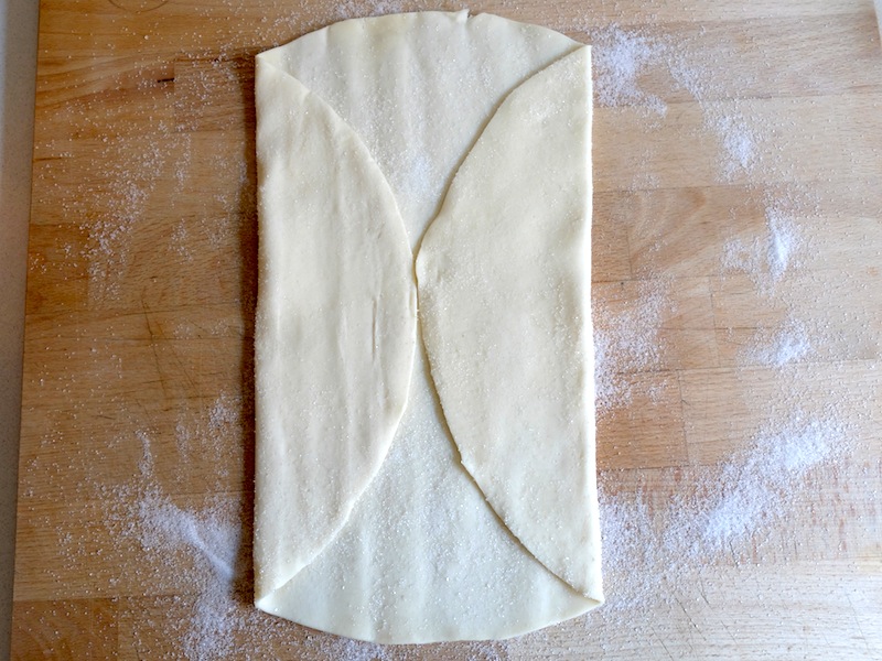 Escalfeu el forn a 210º, en una superfície escampeu sucre (més sucre=més dolces les palmeres jeje). Obriu el paquet de pasta de full i l’esteneu a sobre del sucre, poseu més sucre a sobre i estireu la massa (si és rectangular no caldrà). Podeu ajudar-vos amb un corró de fusta.