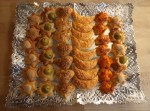 Talleu la pasta fent servir els motlles i aneu posant-les sobre el paper vegetal que haureu col·locat sobre la safata del forn. Pinteu-les amb ou per sobre. Un cop pintades poseu-hi a sobre els ingredients que voleu fer servir, jo les he fet de: orenga, olives, amb ametlla salada, formatge Emmental i sobrassada (de sobrassada no en poseu gaire quantitat perquè no sigui massa salada la pasta) . Després ho poseu al forn uns 4-5 minuts (fins que siguin daurades) a 200º.