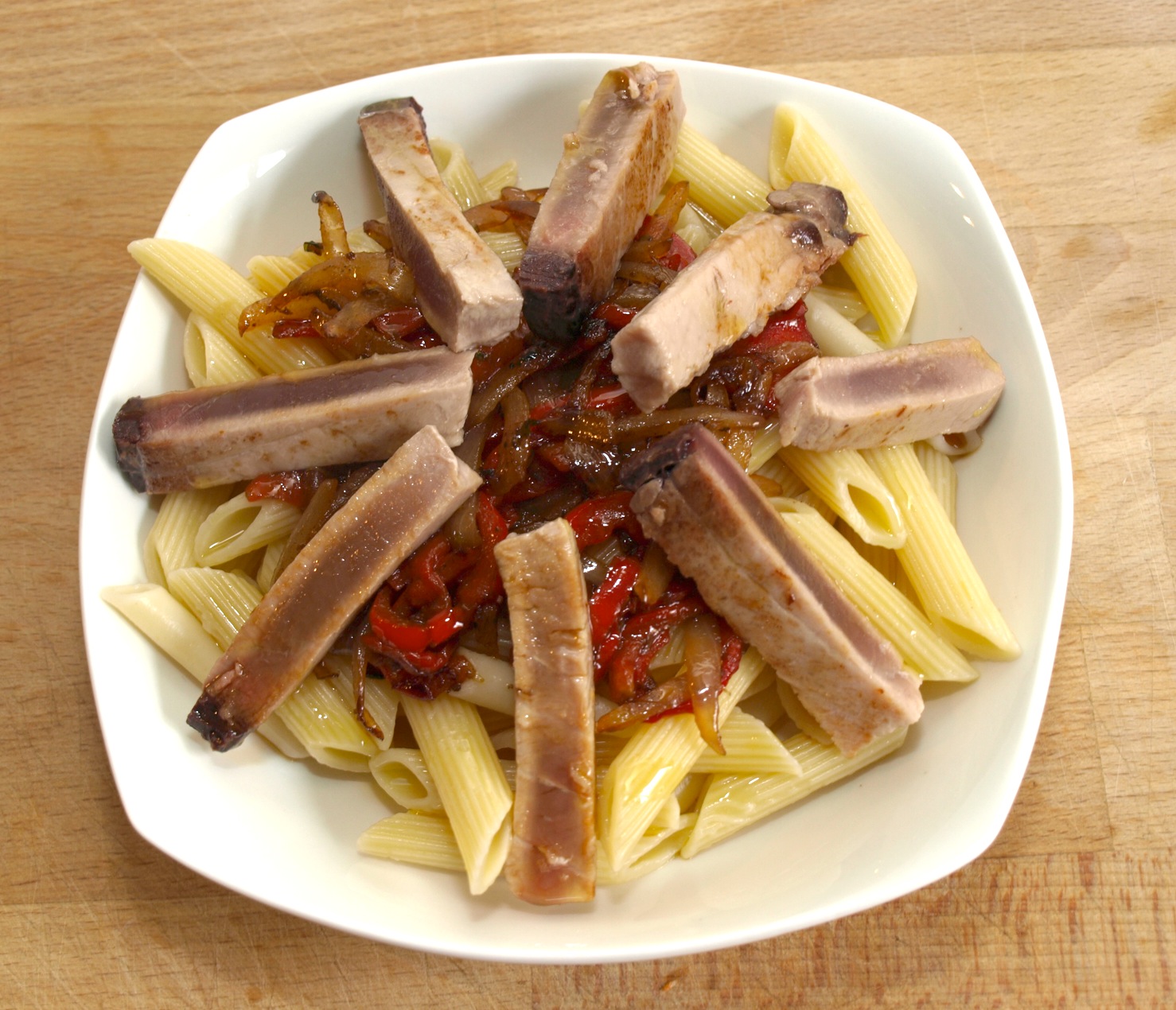 Macarrons amb tonyina fresca