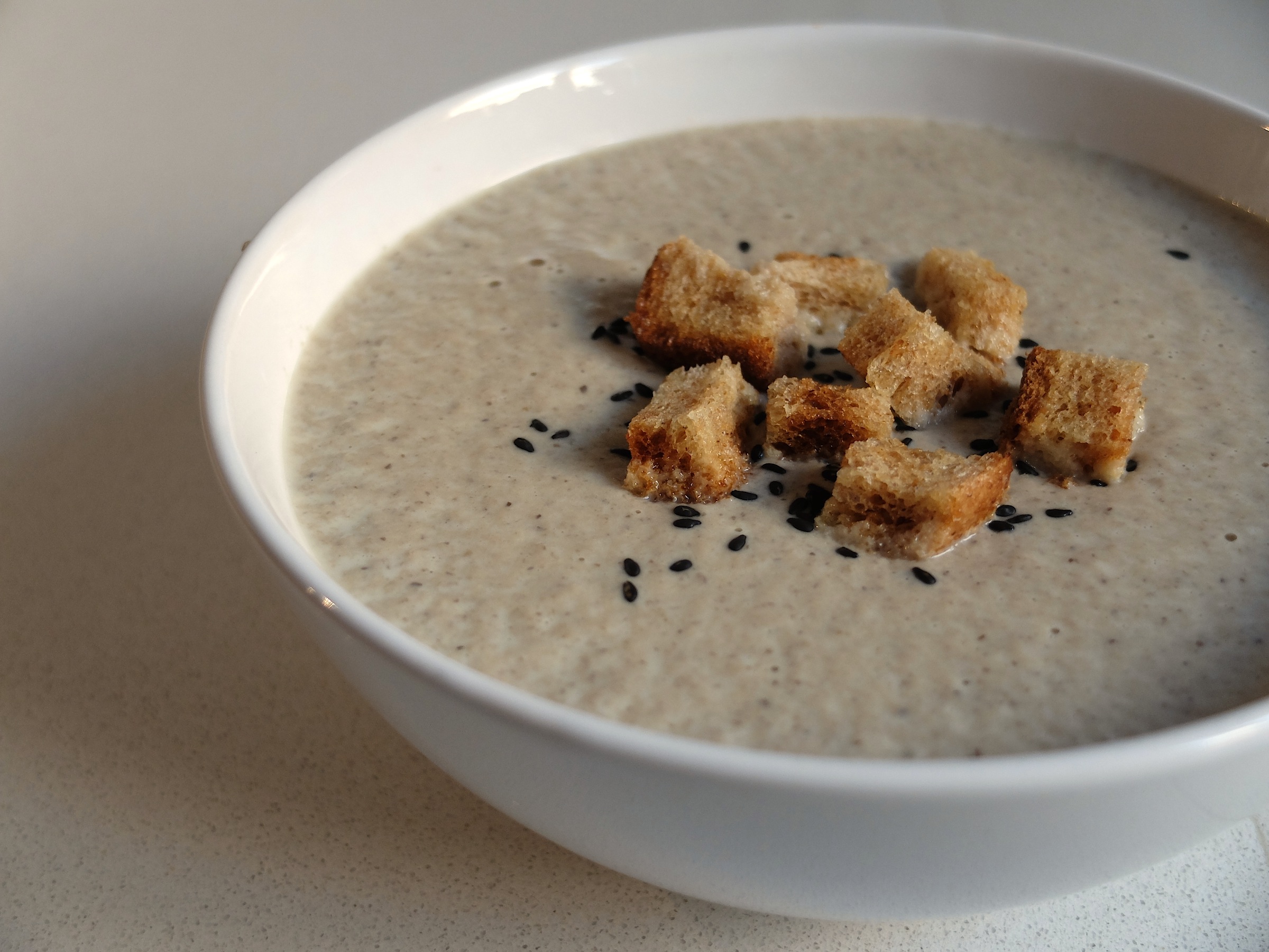 Per decorar podeu afegir-hi uns crostons de pa torrat i unes llavors de sèsam negre.